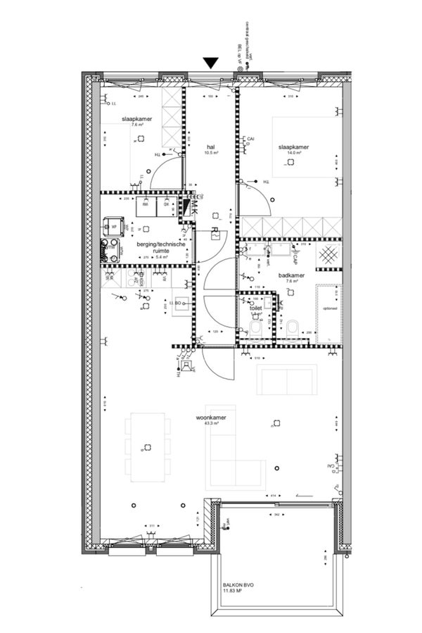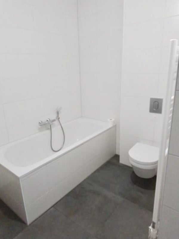 You can reach your flat via the lift or the staircase. When you walk in, you will find yourself in the hall. In the hall, there is a separate toilet and a storage room with connections for the technical installations. Two bedrooms and a living room with open kitchen. The bathroom has a walk-in shower, second toilet, double sink unit, illuminated mirror, recessed spotlights, and... a lovely bathtub!