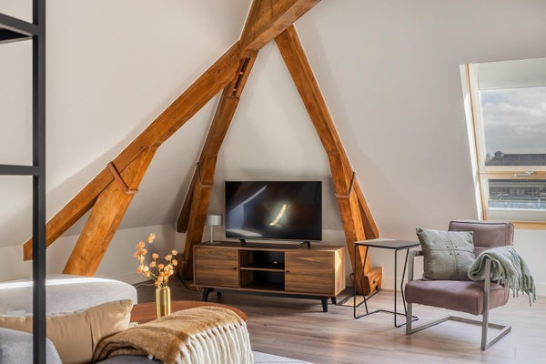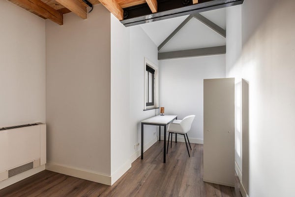 Ein ehemaliges Schulgebäude wurde in das hochwertige Wohngebäude Residenz ‘t Vleuterhuys umgewandelt, mit geräumigen Studios und Lofts. Die Wohnungen haben ein modernes und geschmackvolles Interieur. Die warmen Holzakzente tragen zu einer gemütlichen Wohnatmosphäre bei! Hohe Fenster sorgen für viel Licht.