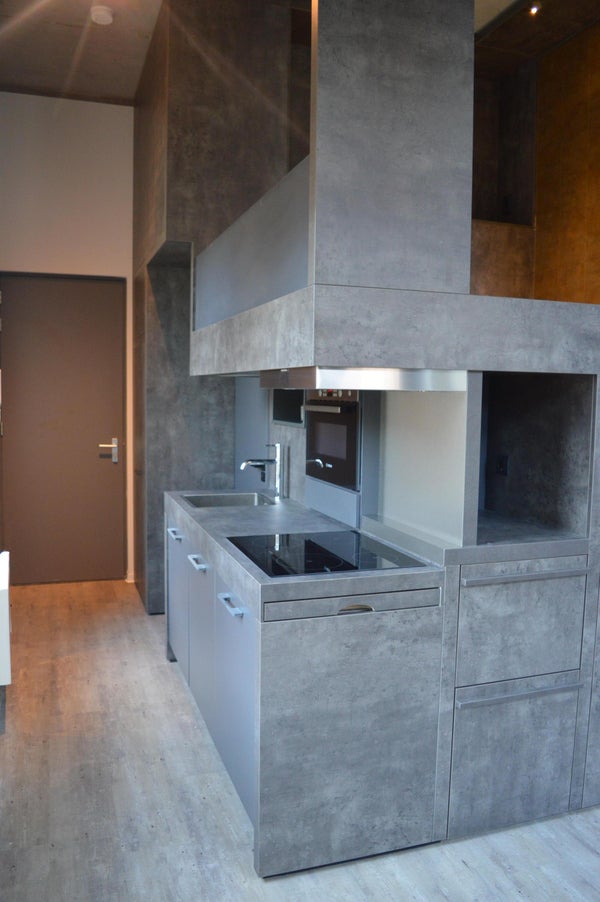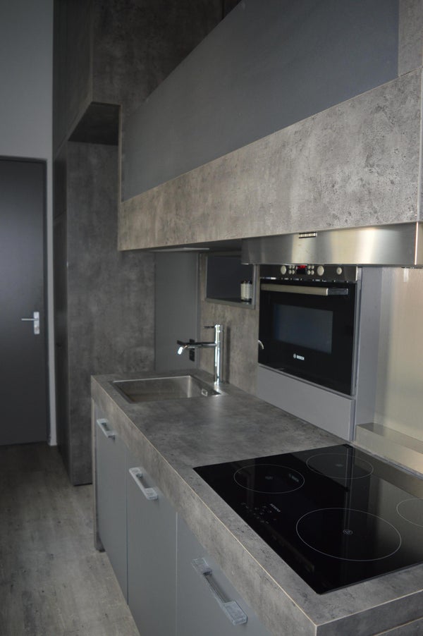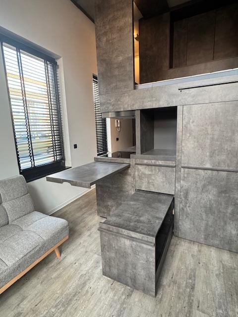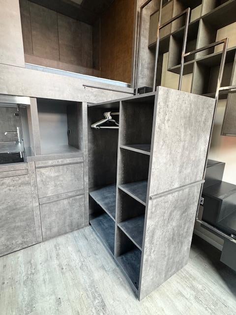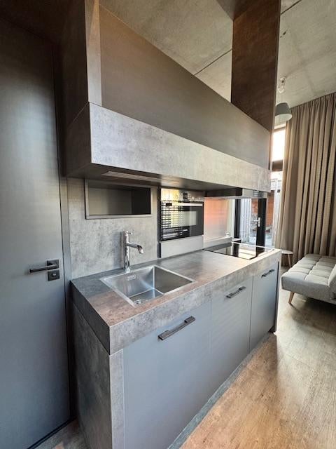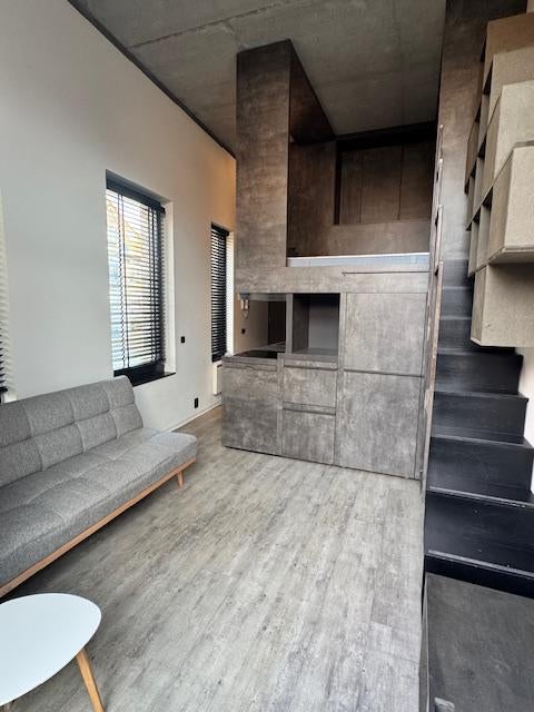 Das Mikro-Apartment bietet ein stilvolles Design mit hohen Decken (ca. 3,70 Meter) und ist mit allen modernen Annehmlichkeiten, Einbauschränken und viel Stauraum ausgestattet.