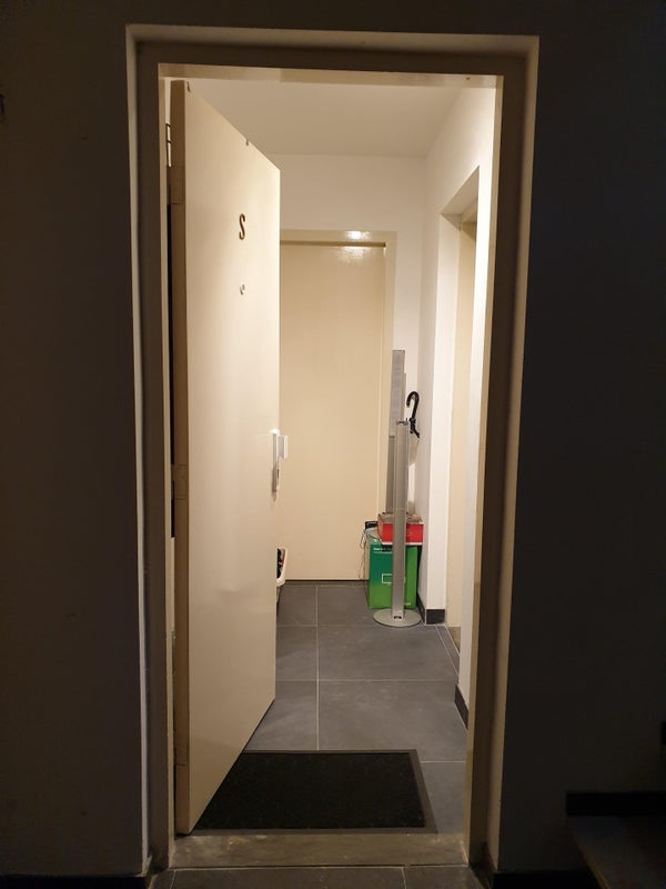 Diese Wohnung befindet sich im Erdgeschoss und besteht aus einem Eingang, einem Wohnzimmer mit Küche, einem Schlafzimmer mit Schrank, einem Badezimmer mit Waschbecken, Toilette, Dusche und Waschmaschinenanschluss. Die Küche ist ausgestattet mit einem 4-Platten-Elektroherd, Dunstabzugshaube, Kühlschrank und einer Arbeitsplatte mit Spüle. Außerdem gibt es einen Abstellraum für u.a. Fahrräder.