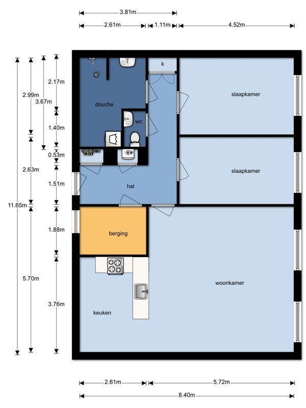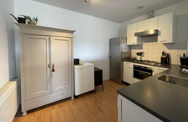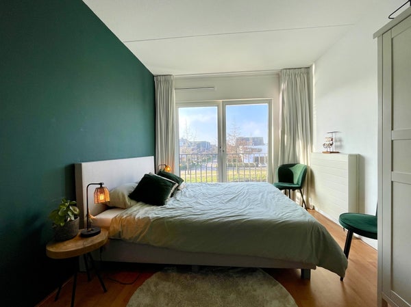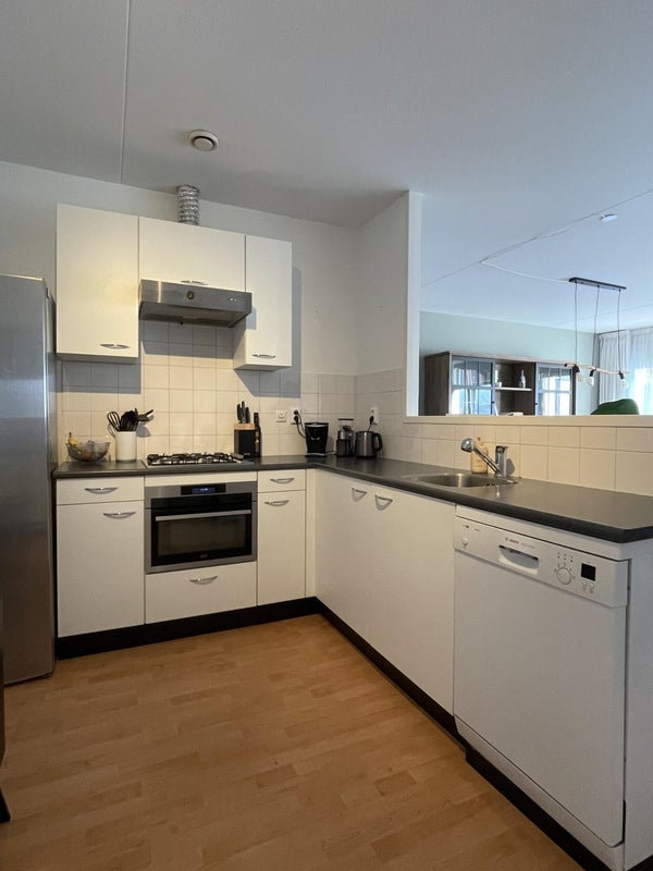 Diese helle und gut gepflegte Wohnung im 1. Stock hat alles, was Sie suchen: Raum, Atmosphäre und eine tolle Lage am Wasser. Das Wohnzimmer ist geräumig und offen, mit großen Kipp- und Drehfenstern, die viel Licht und eine entspannte Aussicht bieten. Die Küche ist praktisch und clever angelegt. Während Sie kochen, bleiben Sie leicht mit Freunden auf der Couch in Kontakt, perfekt für Abendessen, Drinks oder einen entspannten Abend nach der Arbeit. Die Wohnung hat zwei Schlafzimmer: ein nettes Hauptschlafzimmer und ein zweites Zimmer, das ideal als Homeoffice, Gästezimmer oder Ankleidezimmer geeignet ist. Das Badezimmer ist schön groß und verfügt über eine Dusche und ein schönes Waschbecken. Im Flur finden Sie eine separate Toilette, einen Abstellraum sowie einen separaten Wäschebereich mit Platz für eine Waschmaschine und einen Trockner und zusätzlichen Stauraum für alles, was Sie lieber außer Sichtweite halten.