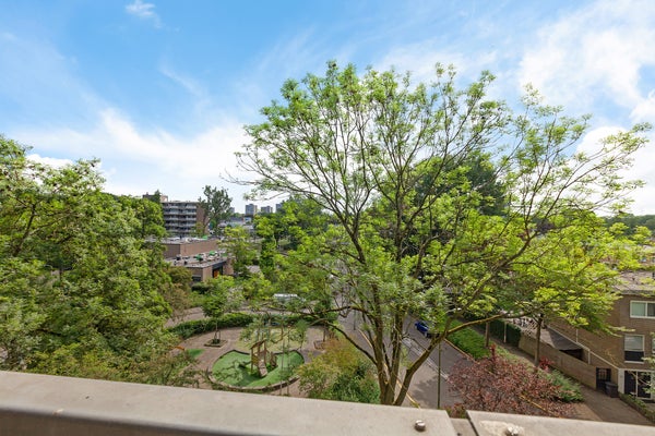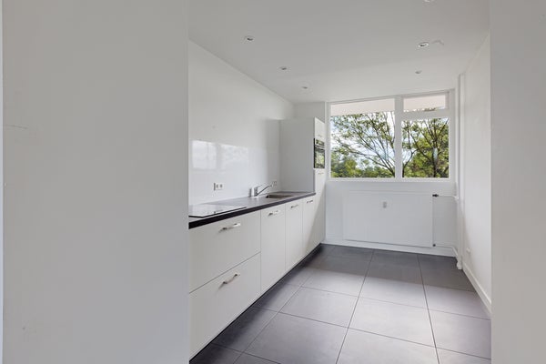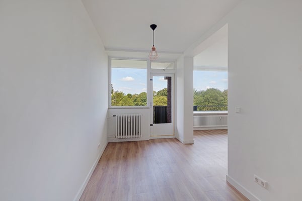 Diese 5-Zimmer-Wohnung (105 m²) verfügt über 3 Schlafzimmer, ein Badezimmer, eine Küche und eine separate Toilette. Diese geräumige Wohnung bietet einen wunderbaren, ungestörten Blick vom nach Südwesten ausgerichteten Balkon.