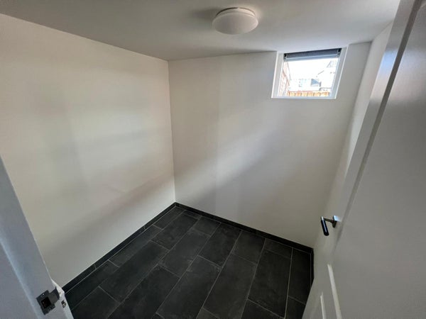 The utility room at the rear has a space for washing machine and dryer connection, CV space. The house also has a second storage room. Door to garden with shed.