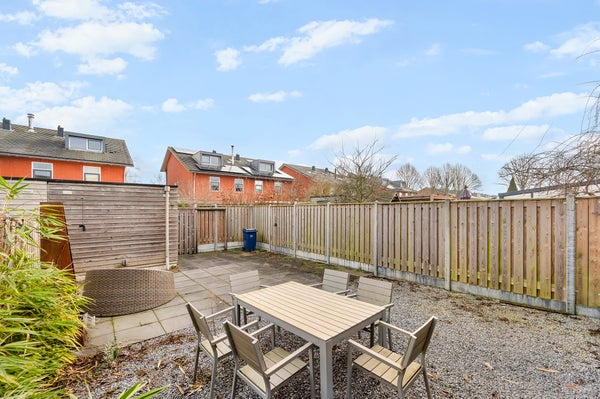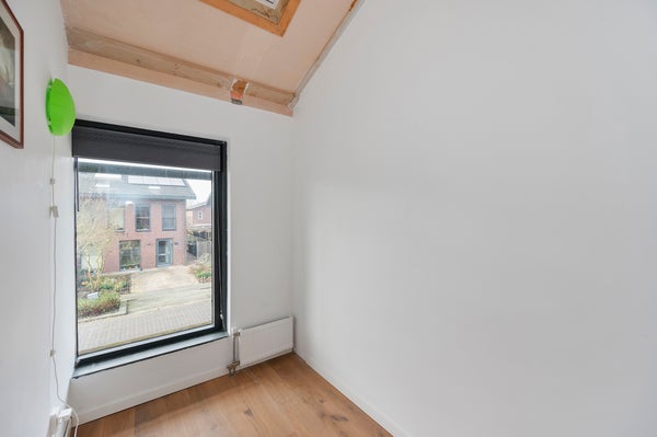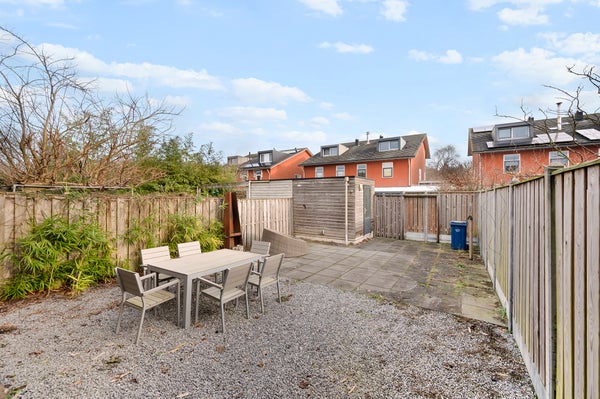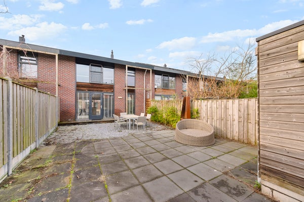 The front garden is mostly laid out with gray gravel and partly features a wooden deck. The garden is spacious and provides enough parking space on your own property for two cars. The backyard is partly laid out with the same gravel as the front garden and partly tiled. The garden offers a lovely spot to relax, sit cozily, or barbecue. In addition, the garden has a detached wooden shed, ideal for extra storage of bicycles and garden tools.
