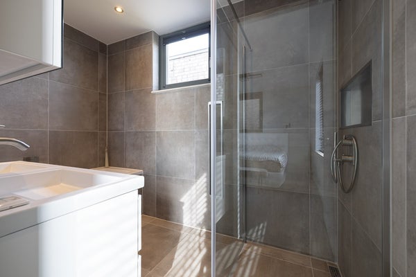 The first floor comprises two well-proportioned bedrooms and a modern bathroom. The bathroom is stylishly finished and equipped with a bathtub, separate walk-in shower, washbasin vanity unit and a second toilet. Providing both comfort and convenience.
