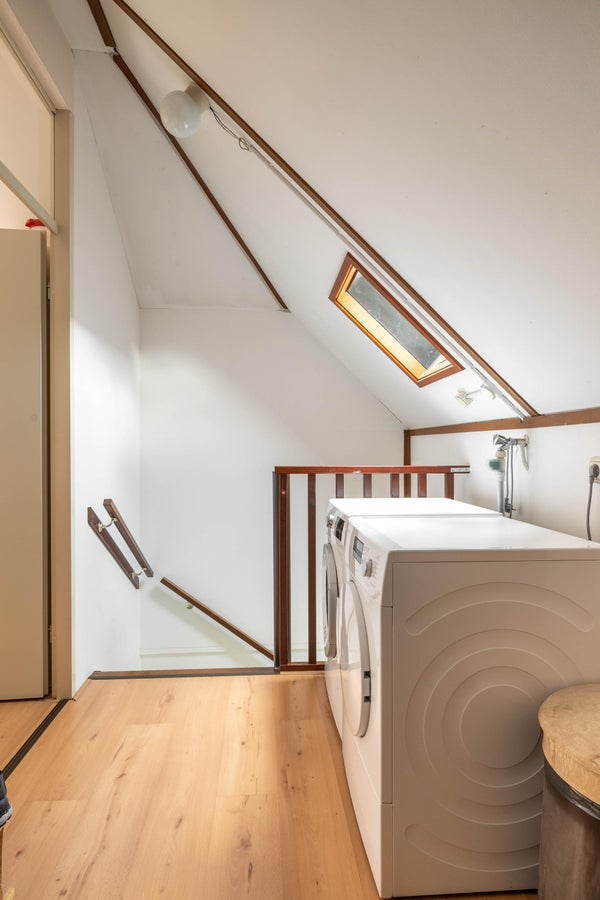 On the second floor, which is also accessible via a staircase, is another spacious bedroom. On this floor, you will also find the washing machine and dryer in the hallway. Overall, this is a special and spacious home with a perfect location that is very suitable for a temporary stay due to the complete furnishing. Whether the house serves as a landing spot from which to look for more permanent housing or as a pleasant place during a temporary assignment, this is a comfortable "home away from home"!