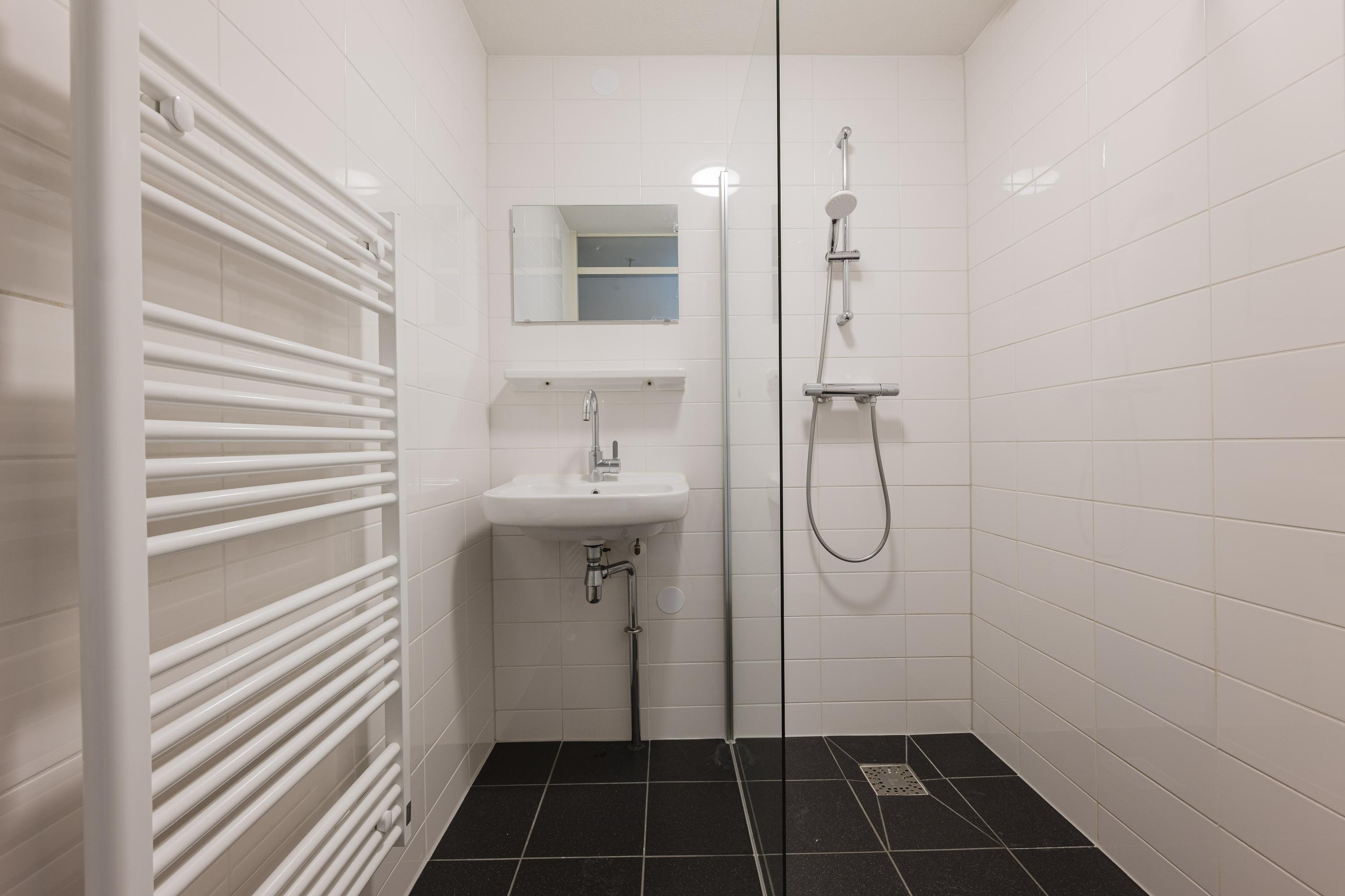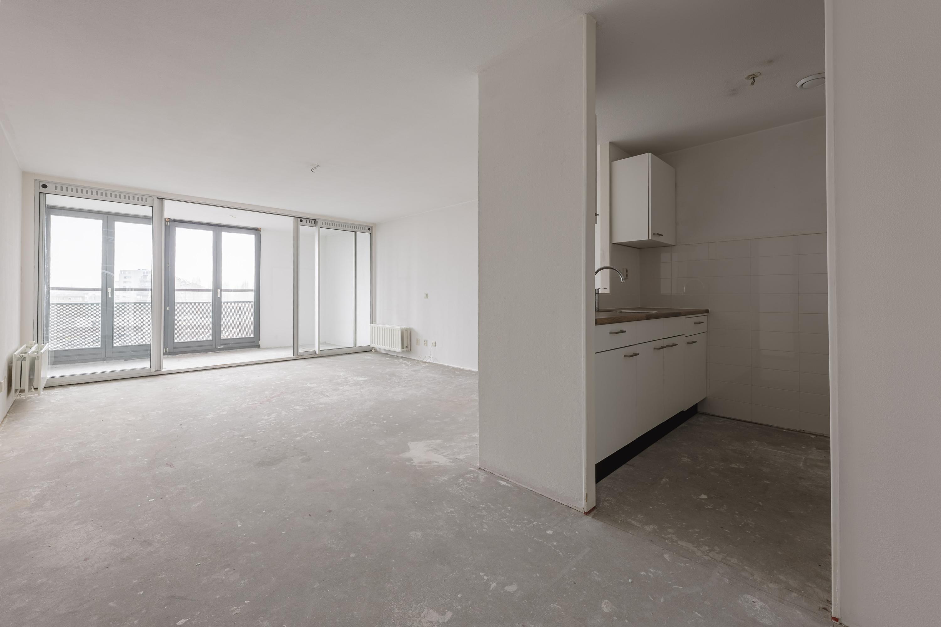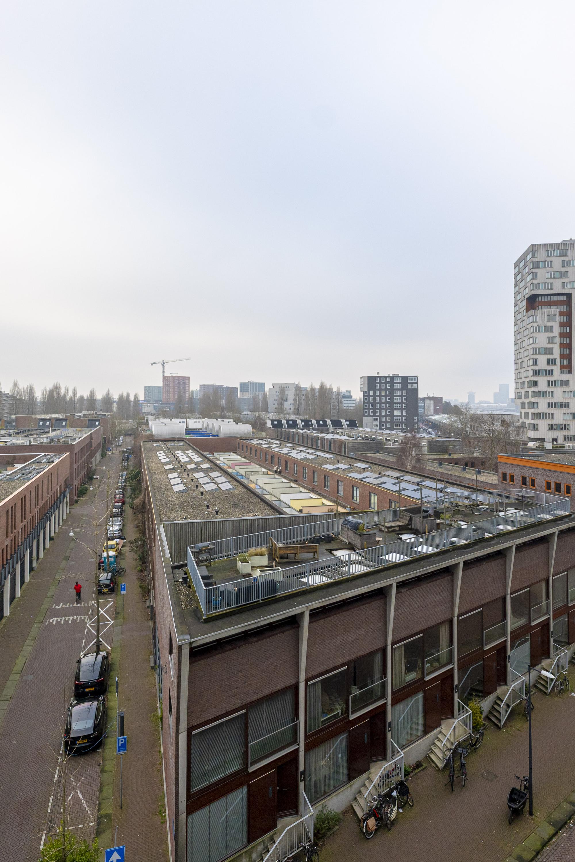 This lovely 3-room apartment of approximately 81m² is situated on the 5th floor, featuring two bedrooms and a conservatory. The neighborhood offers peace and convenience, with excellent accessibility. The Piet Heijntunnel allows quick access to the A-10 by car, and you can bike to the Brazilië shopping center and Central Station in about 10 minutes. The apartment includes an entrance, a living room with a semi-open kitchen and the conservatory, a separate toilet, a bathroom with shower and sink, an indoor storage room, and a bedroom facing the gallery. There is a separate storage room in the basement. The rental price for this apartment is € 1,850 per month, excluding gas, water, and electricity, with a deposit of one month's rent.