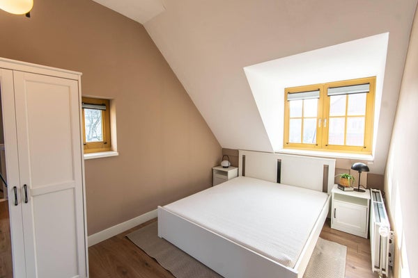 This is a unique opportunity to rent a furnished corner townhouse with a private garden, located close to the ferry in Amsterdam Noord. The house features three bedrooms and two bathrooms, making it ideal for a small family or a couple who needs extra space. One dog is welcome.