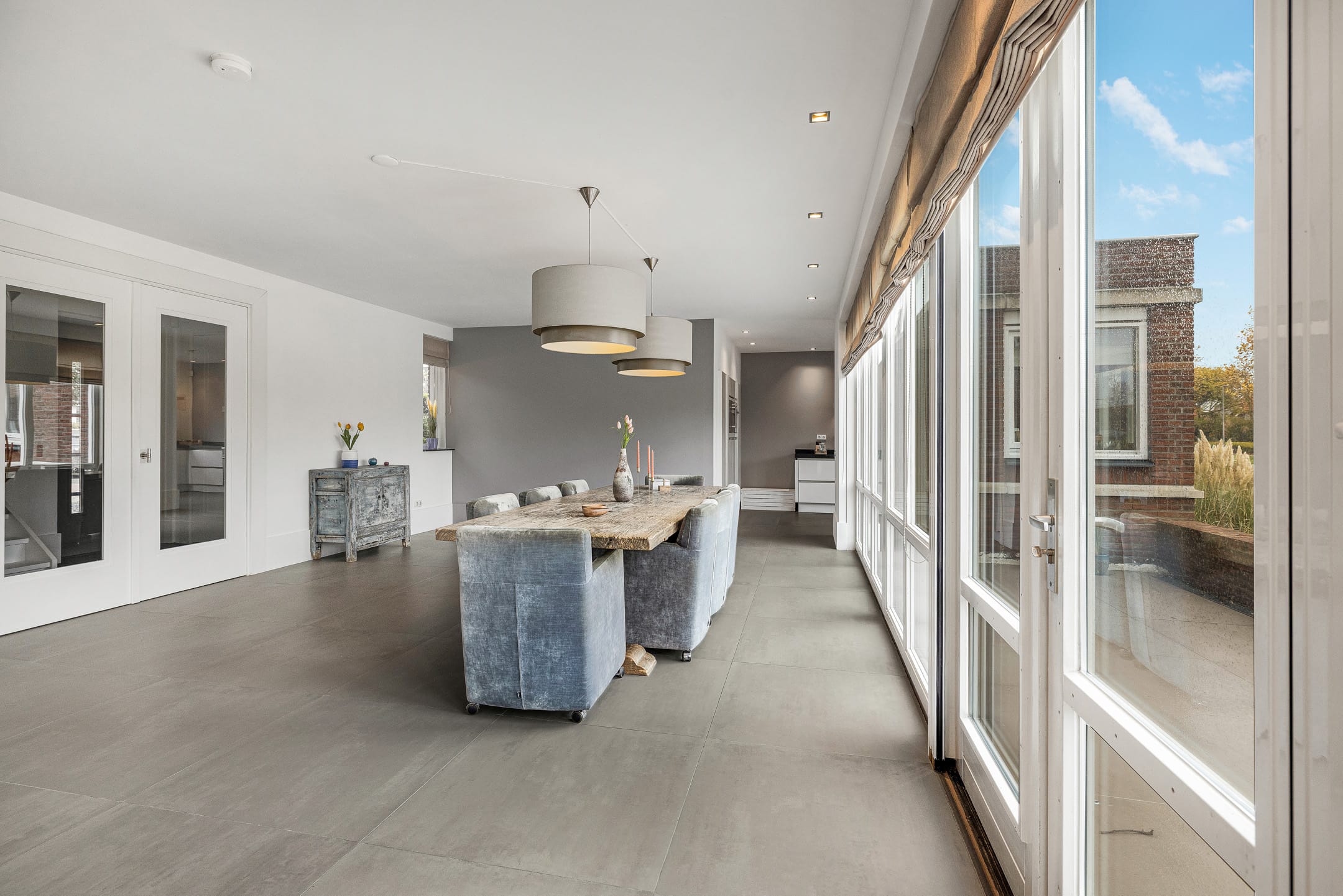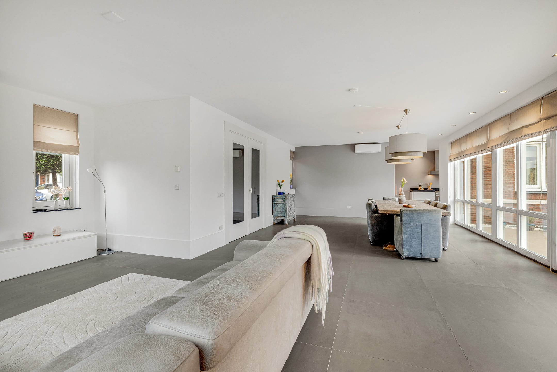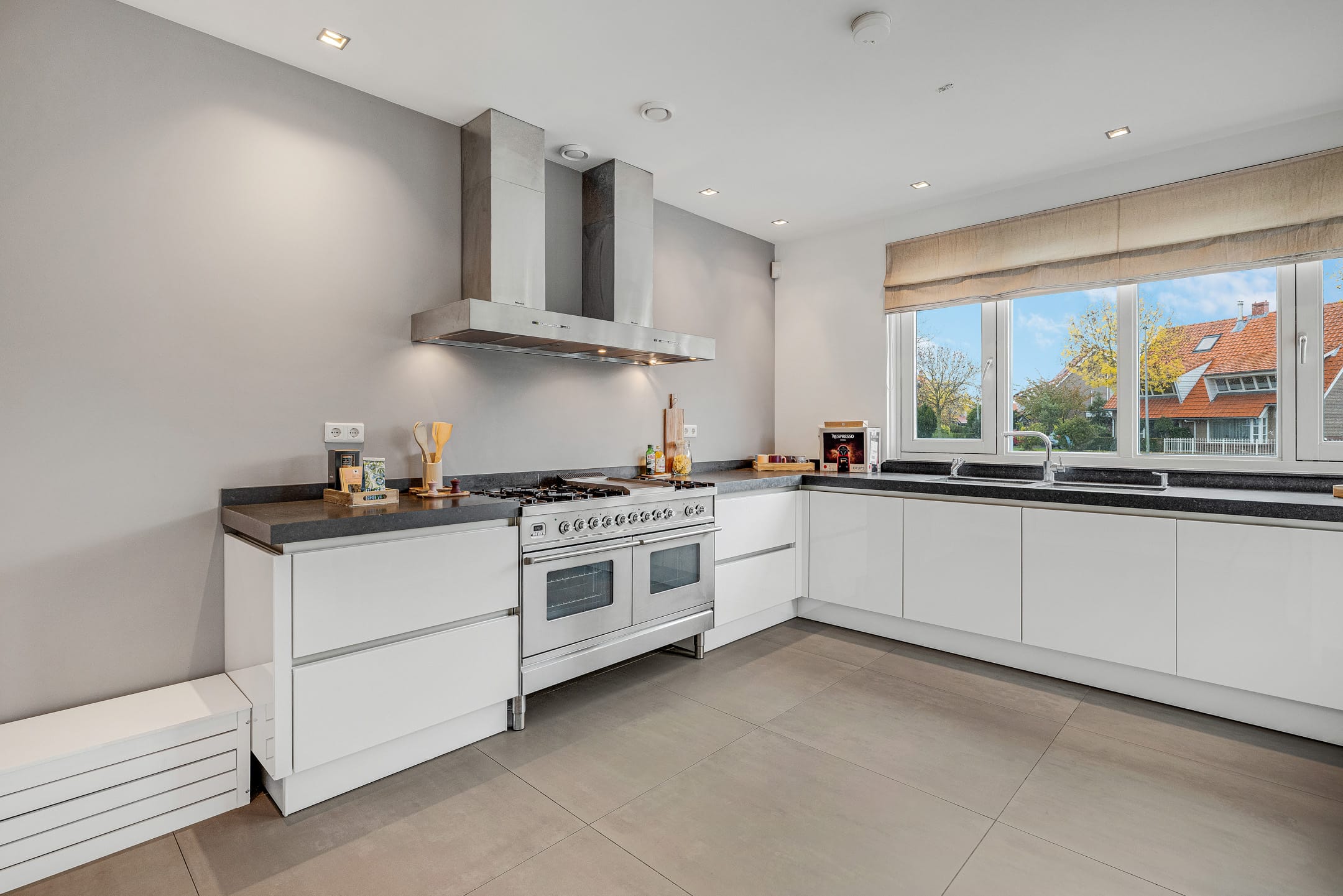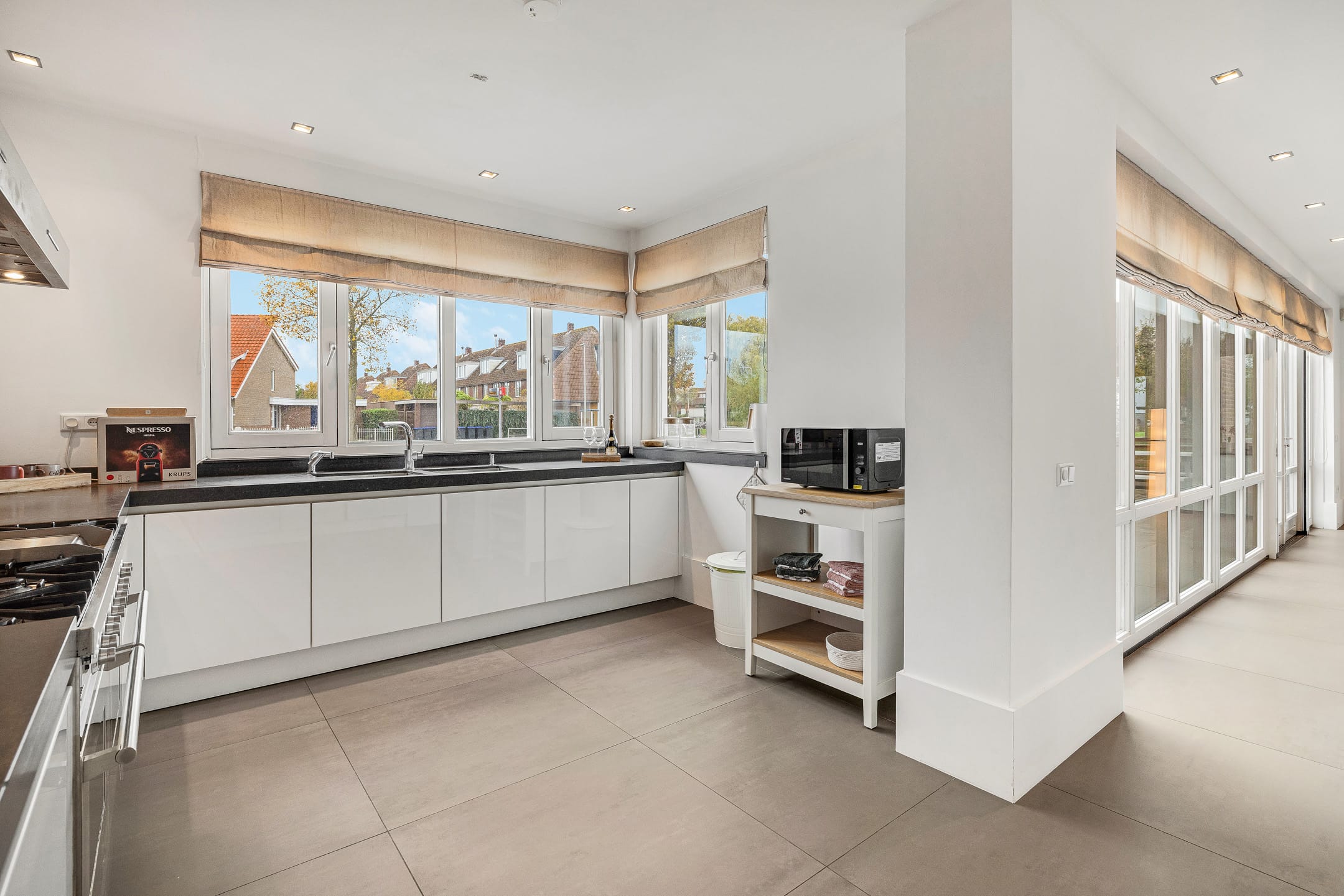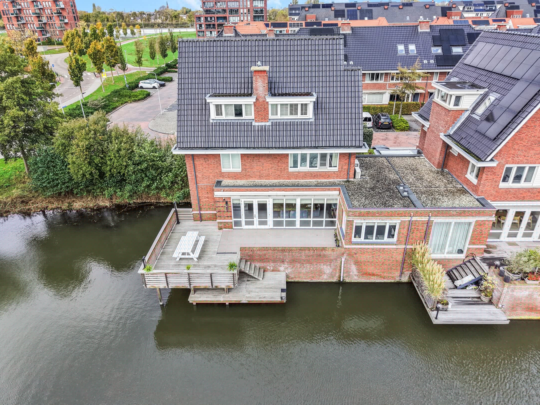 This luxurious and charming five-room home, built in a 1930s style, features a modern interior and is situated by the water. It has a large sun terrace and private parking. Located near the shops of Bergschenhoek and Berkel en Rodenrijs, it's just a short walk from Annie M.G. Schmidt Park and public transport. The layout includes a spacious living room with underfloor heating and a gas fireplace, a semi-open kitchen overlooking the water, and an enlarged backyard. The first floor hosts the bedrooms and a modern bathroom with a double shower and bathtub. The attic offers extra rooms and a bathroom with a steam shower. Additional features include air conditioning, a water softening system, and an alarm system. The house is fully furnished and has an energy label A.