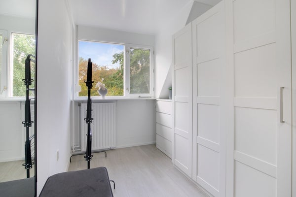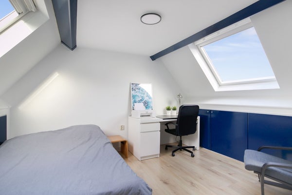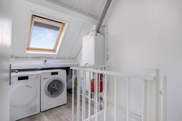 Three bedrooms on the first floor. Fresh bathroom with bath/shower, washbasin with vanity unit and toilet.
