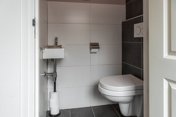 Through the kitchen with various built-in appliances, the neat bathroom and the toilet can be reached. The utility room also provides access to the backyard.