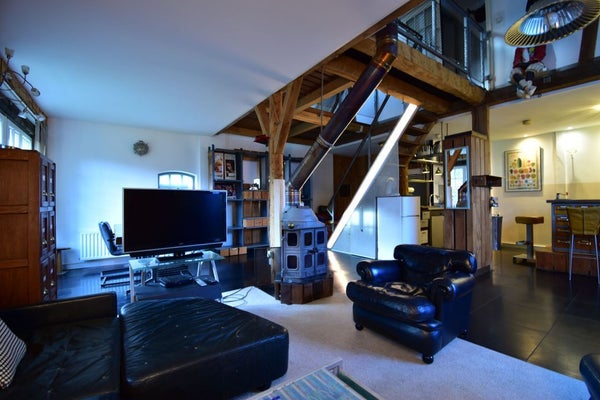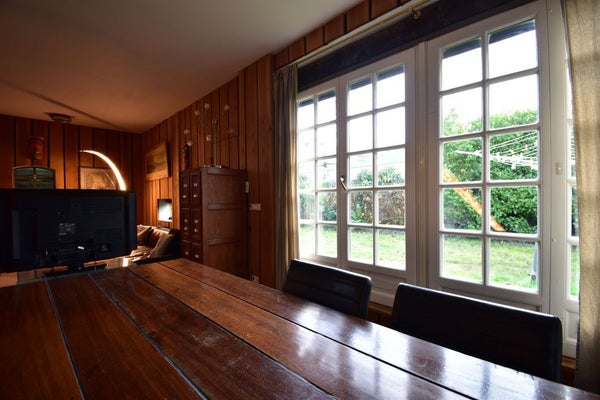 This property boasts a wealth of character, as well as two bedrooms, one bathroom with a toilet and one shower, and a spacious living room with an open-plan kitchen.