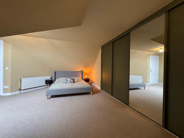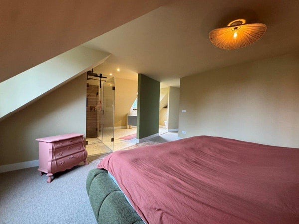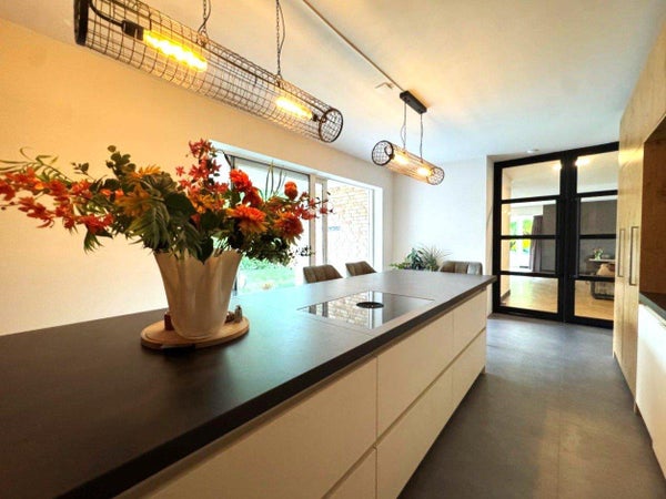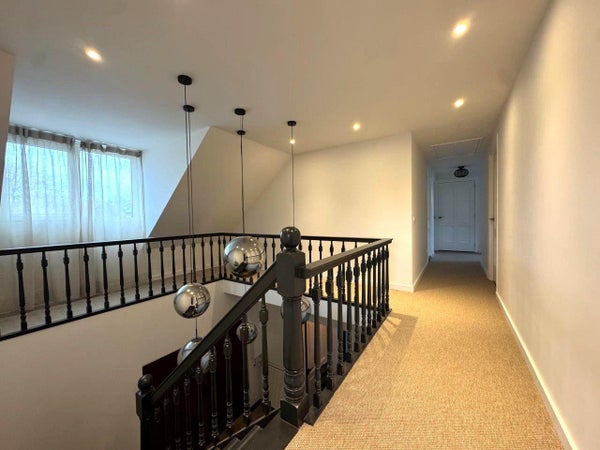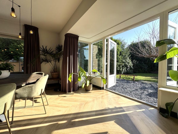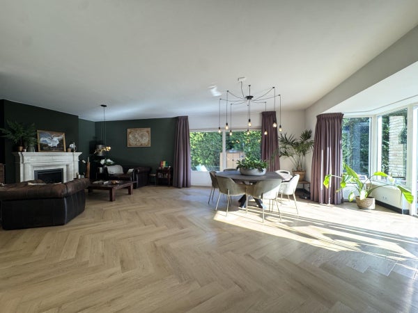 The house is characterized by its spacious layout and pleasant natural light. The generous living room and the large kitchen-diner together form the heart of the home and offer plenty of space for everyday living and entertaining. Large windows and French doors create a beautiful connection with the garden and allow abundant daylight to enter the home.