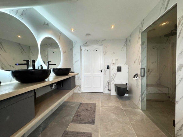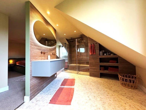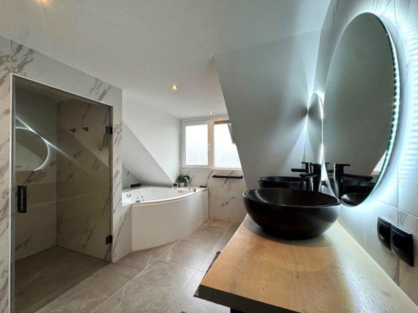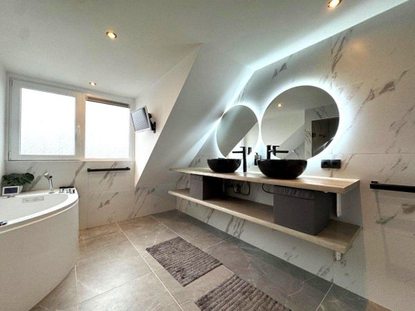 The two bathrooms are modern and offer all the comfort required for a family or guests. The layout of this floor allows for flexible use of the rooms, for example as bedrooms, guest rooms, or additional workspace.