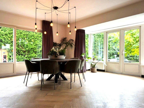 This spacious detached furnished home is located on Haagweg in Breda and features a private driveway, carport, and a large, green backyard. The property offers a high level of living comfort with generous living spaces and a contemporary finish.