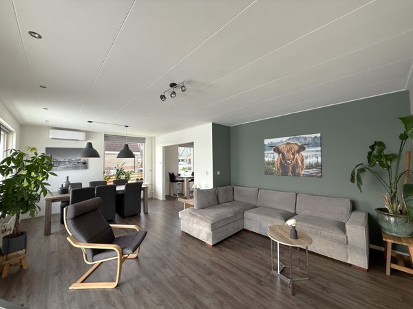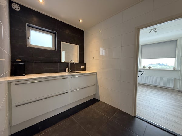 This neat, fully furnished house with almost 800m² of land is available for rent at De Kamp in Britsum, with unobstructed views over the fields. Leeuwarden and Stiens are just a few minutes' drive away. The property is rented furnished for short-term rentals only.