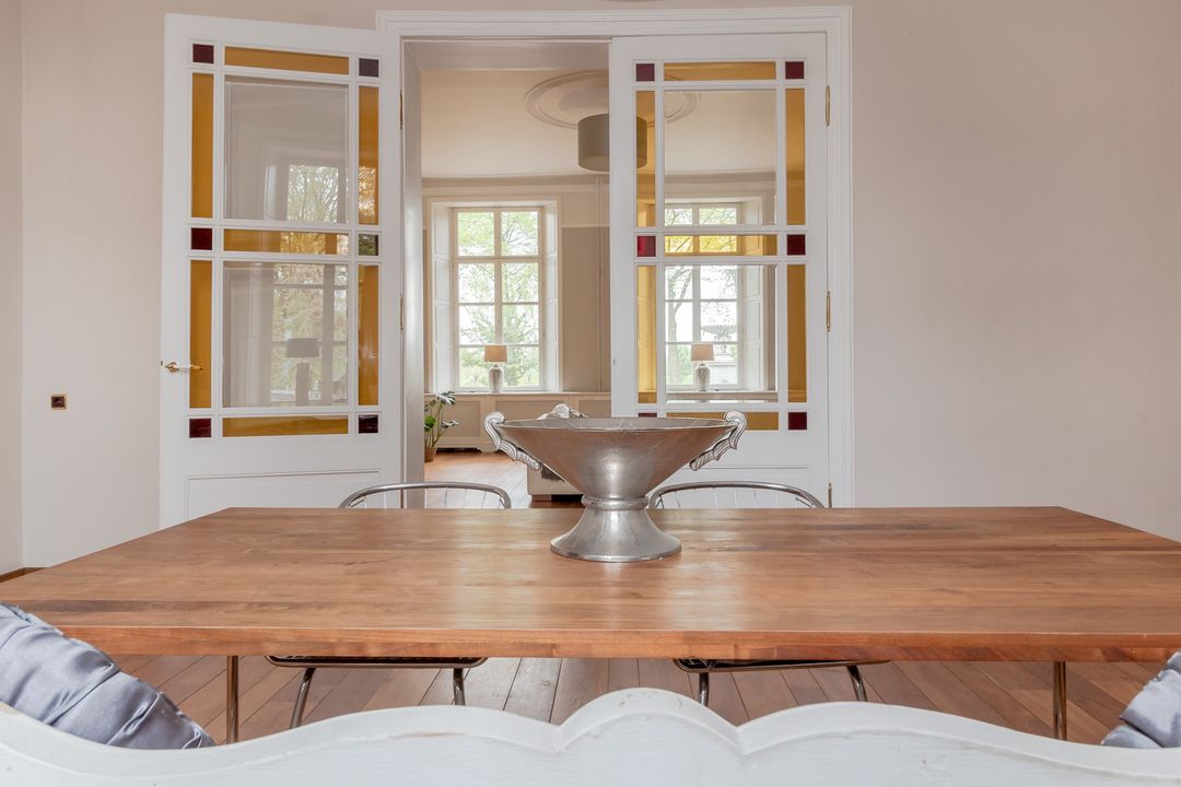 Castle Malborgh in Buggenum offers a unique living experience with a swimming pool and 10 horse boxes. This national monument combines historical elegance with modern comfort, nestled in a lush garden, ideally located between Venlo and Roermond. The first floor features six rooms, including five bedrooms and a hobby room, along with two modern bathrooms. The master bedroom has a walk-in closet and an en-suite bathroom with stunning views. The attic retains its authentic charm with original details. The maintenance-friendly garden provides privacy, perfect for relaxation and gatherings. A garage for vehicles and horse facilities make this a dream place for equestrian enthusiasts. This is your dream home!