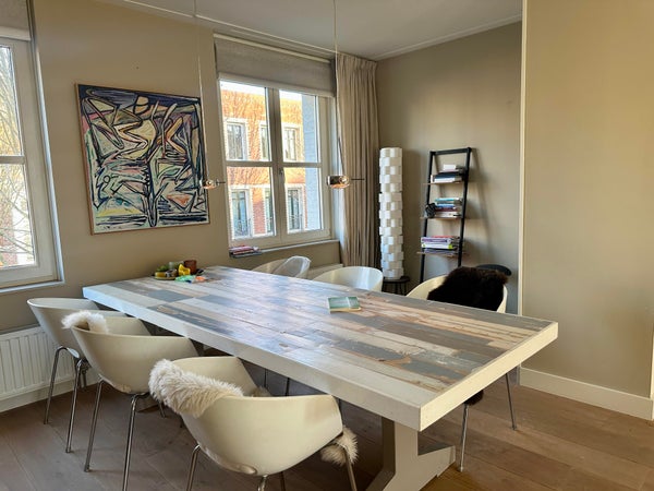 Very spacious and modern canal house with three bedrooms, two bathrooms, two terraces on the water, and a private parking space. The house is turnkey furnished and located within walking distance of Naarden-Bussum station and the center.