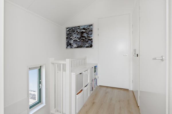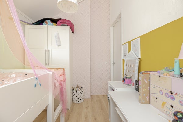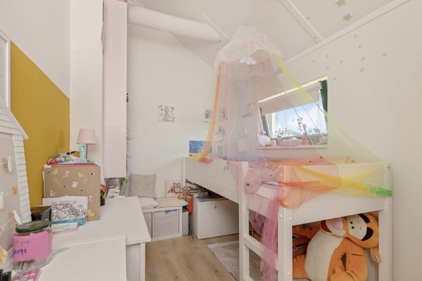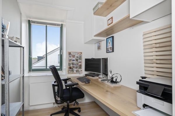 On the top floor there are 3 more spacious rooms: 1 is currently used as a 'home office'. The second and third room is used as a children's bedroom. The technical room is also located here, which is used as a laundry room. Washing machine and dryer connection are of course available. The setup for the heat recovery system is also located here.