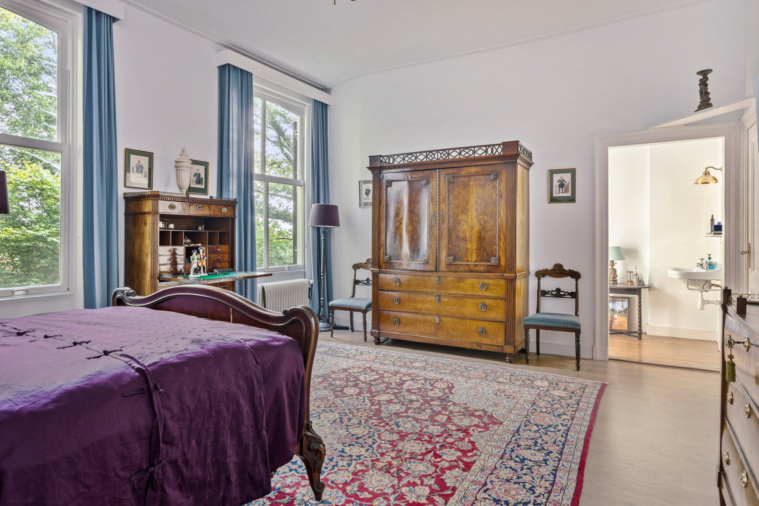 Discover this beautiful manor house on Poppenallee, conveniently located for quick access to the A28 and Zwolle. Featuring 8 bedrooms, a total of 12 rooms, and a living area of 391 m² across 3 floors, this home provides ample space. Central heating ensures comfort, while the new bathroom and separate wet room offer modern amenities. The large surrounding garden provides views and a place to relax. This historic property, part of an estate, has a rich history and has been thoroughly renovated, preserving original details. Suitable for both families and workspaces, and available for a minimum rental period of 2 years.
