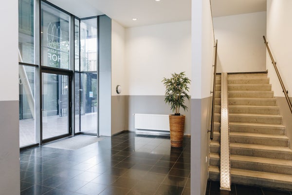 This spacious 4-room maisonette of 170 m² occupies the 11th and 12th floors in Prinsenhof, located in the Hague neighborhood of Bezuidenhout. The home features a modern open kitchen, two bathrooms, and three bedrooms, making it an ideal blend of city living and tranquility. Nearby are business districts like Beatrixkwartier, with excellent public transport access. Enjoy city views from the home, equipped with a videophone and indoor storage. Parking is available in the underground garage. The rental period is a minimum of 1 year with a notice period of 1 month.