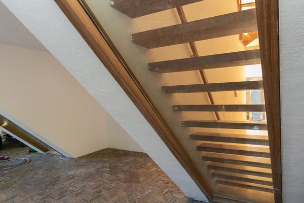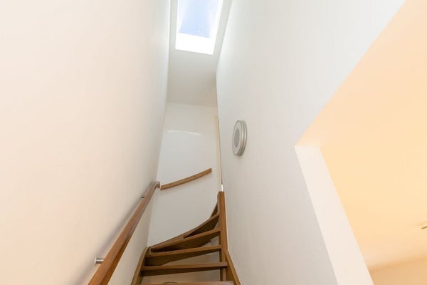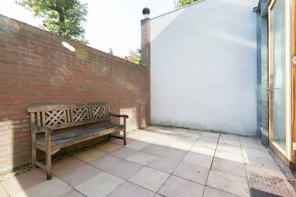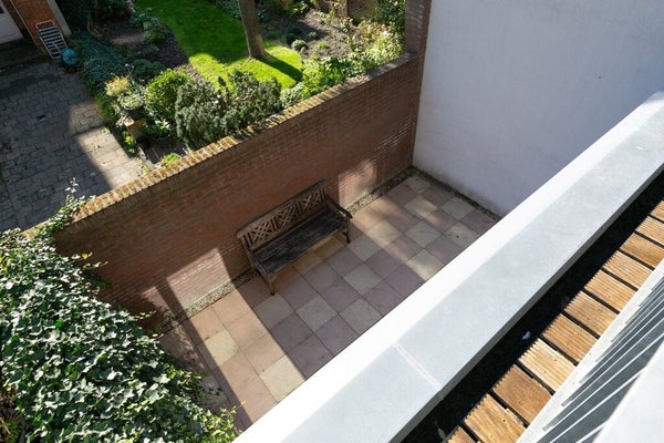 Ground floor: Through a secured electric gate you enter the private courtyard with your own parking space directly in front of the house (no permit required). There is ample space for bicycles and/or a Vespa. Entrance hall with meter cupboard (10 circuits with earth leakage switches), modern toilet with washbasin, and a spacious, light-filled living kitchen (Piet Boon) with French doors opening onto the sunny south-facing patio garden. A practical storage room is also located on this floor. First floor: Open staircase leading to the generous living room with direct access to the large south-facing roof terrace, a wonderful private outdoor space to enjoy the sun in peace. Second floor: Landing with access to two spacious bedrooms, one featuring a private balcony. The centrally located bathroom is equipped with a shower, double washbasin and toilet.