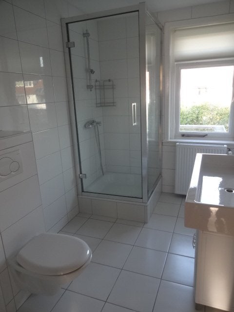 1st floor: Neat bathroom with a shower, fitted wash basin, 2nd toilet and a connection for the washing machine. Master bedroom (app. 15 m2) with a built in cupboard. Bedroom at the front side. 3rd bedroom with a dimension of app. 6 m2.