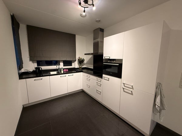 On the ground floor, you will find a spacious entrance, modern toilet room, living room, and open kitchen. The living room is bright and spacious, with direct access to the large garden. The practical kitchen is equipped with sufficient cupboard space and worktops and is open to the living room, creating a spacious and cozy whole.