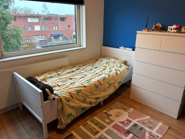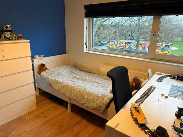 Spacious and well-situated single-family home in an attractive location in the popular ‘Meerhoven’ neighborhood in Eindhoven. The house has a total of 3 bedrooms, a spacious living room with modern kitchen, and a low-maintenance garden. There is also access to an enclosed communal garden at the rear, available to all residents around the block.