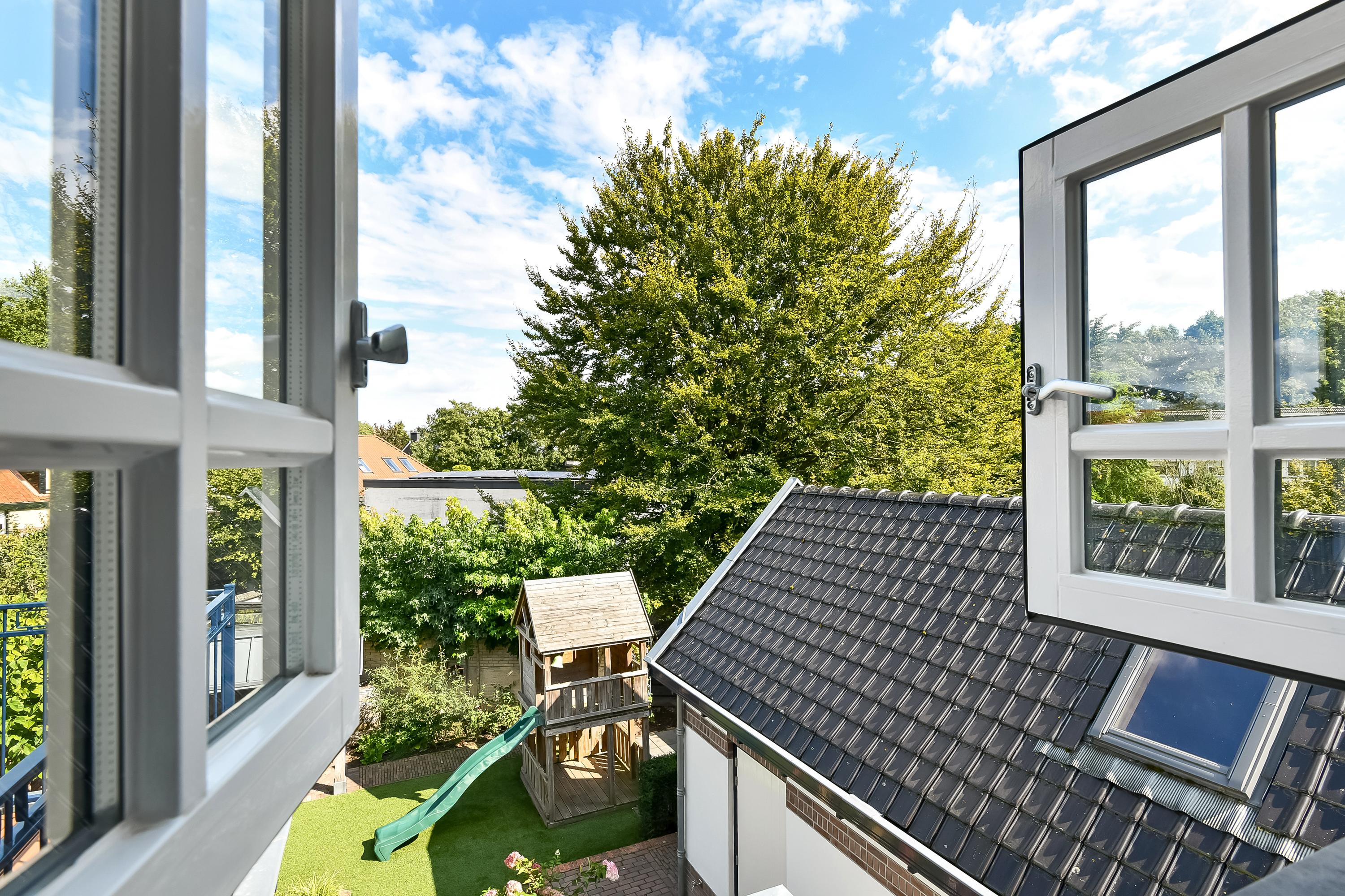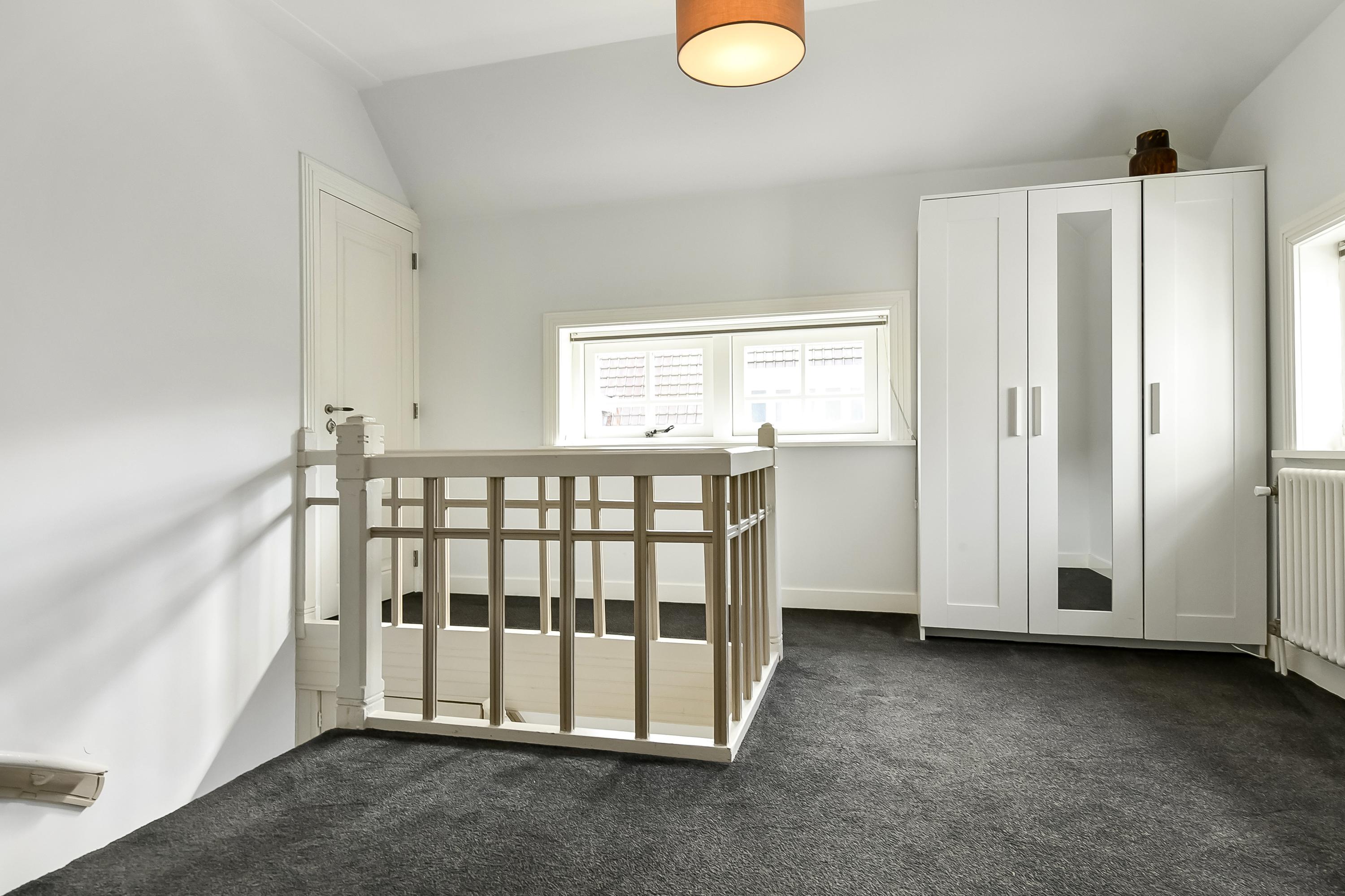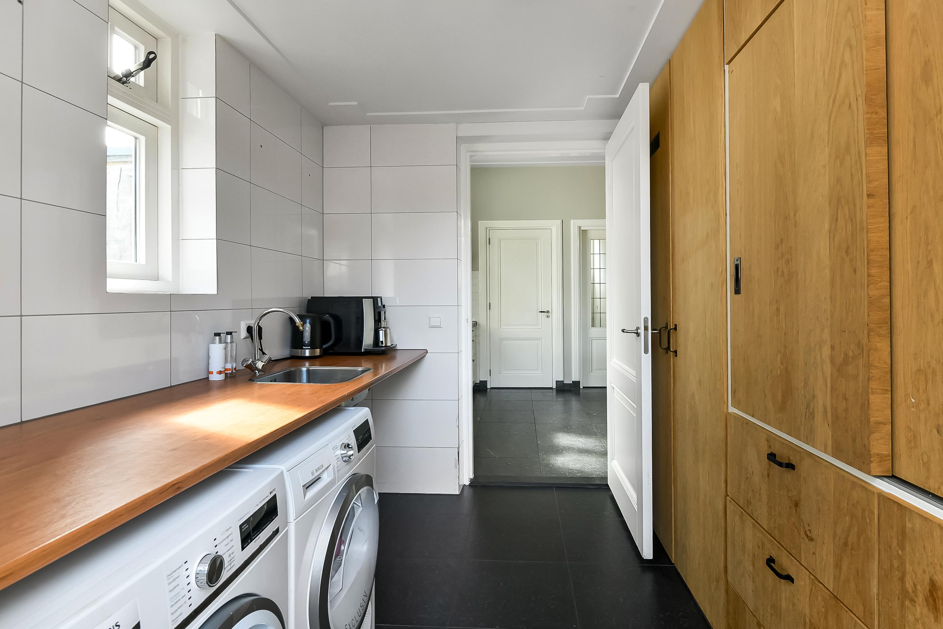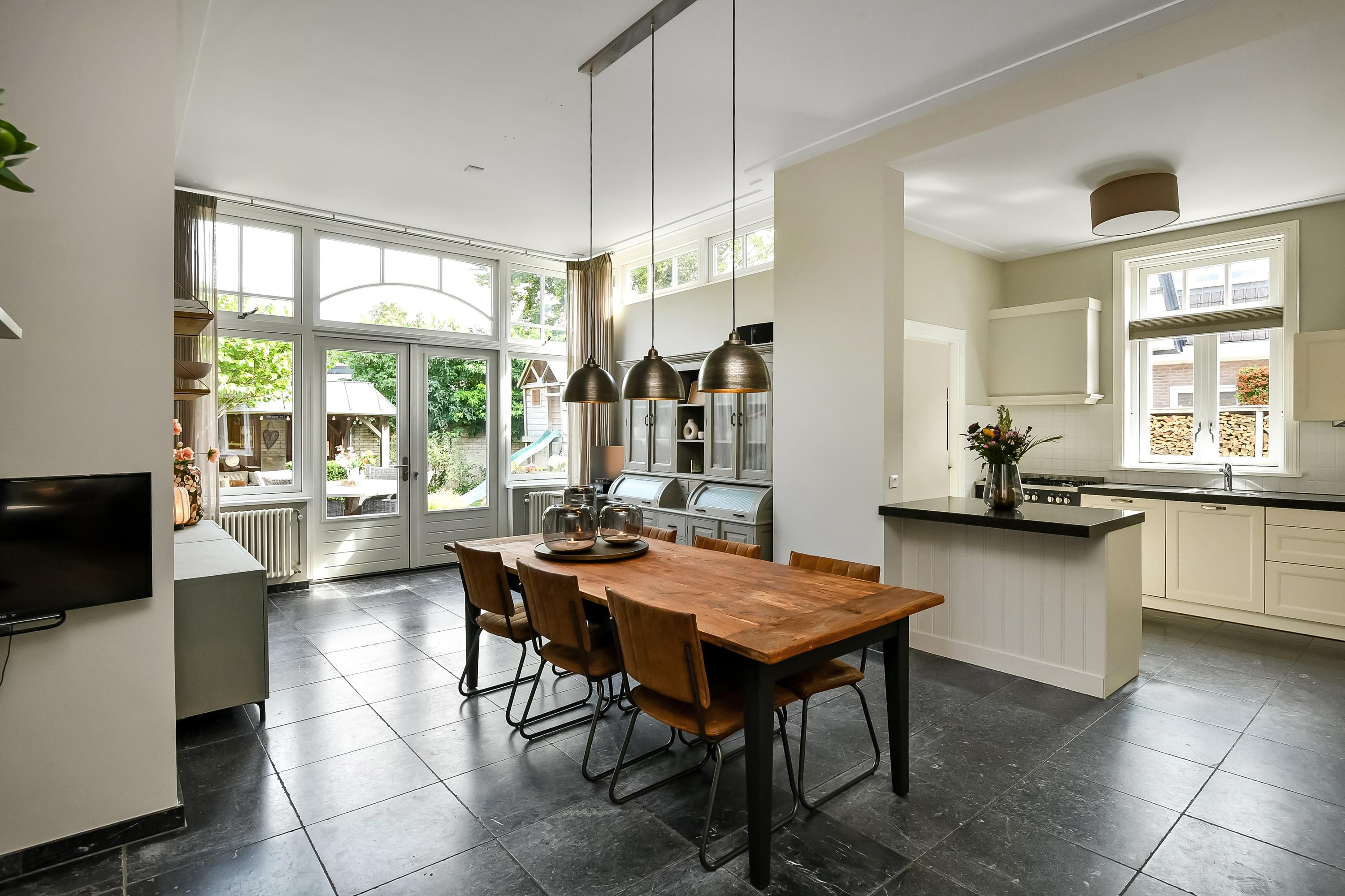 This stunning villa, built in 1906, combines authentic charm with modern living comfort. Available for temporary rent, it features 184 m² of living space and seven rooms, including four bedrooms. A spacious hall leads to a bright living room overlooking the garden and an open kitchen with built-in appliances. Upstairs are two large bedrooms, one with access to a roof terrace. The bathroom is spacious and modern. The property includes a standalone garage measuring 6.41 x 3.4 meters, a lovely backyard, and a driveway for multiple cars. Located in the authentic station neighborhood, within walking distance to the center and near highways, it is the ideal family home for remote working.