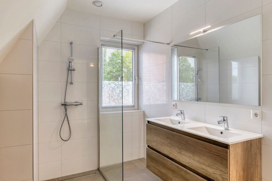 This modern, accessible home at Enkweg 1 in Epe is temporarily available for rent at €2,500, excluding electricity and water. Set on a spacious plot of 434 m², the house is built with high-quality materials, featuring PVC frames, triple glazing, a heat pump, and solar panels. The entry hall leads to a bright living room with double doors opening to a sunlit garden. The open-plan kitchen is equipped with modern built-in appliances, and the bedroom at the rear includes a luxury bathroom with a walk-in shower. Upstairs, there are three spacious bedrooms and a second bathroom. The garage provides access to the garden, and the well-maintained southwest-facing garden complements the home. The living area is 115 m², fully insulated, and gasless.