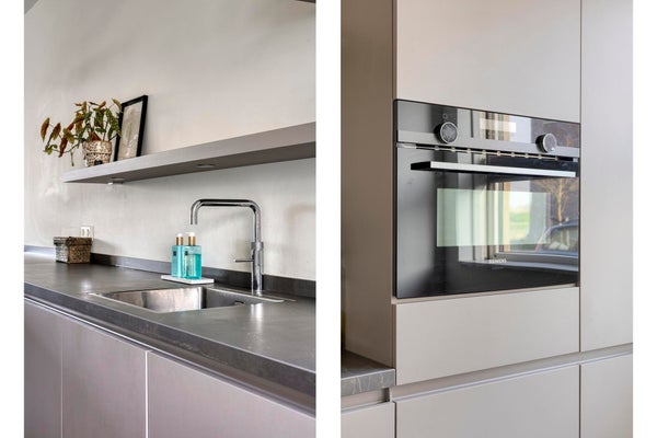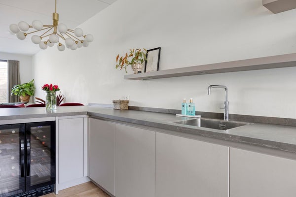 Through the front door you enter the central hall with access to the living room, the toilet and the staircase to the first floor. The living room is very spacious and features a generous sitting area and a matching dining area. The open kitchen, located at the front of the property, is modern and fully equipped with all conveniences. The bar immediately catches the eye and invites you to take a lovely bottle of wine from the climate cabinet while keeping your partner company during cooking!