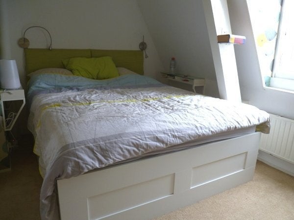 Upper floor with a front bedroom with 2 person bed and behind the guest room with wardrobe and sleeping/ sofa.