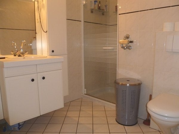 Large modern bathroom with shower, washbasin and 2nd toilet.