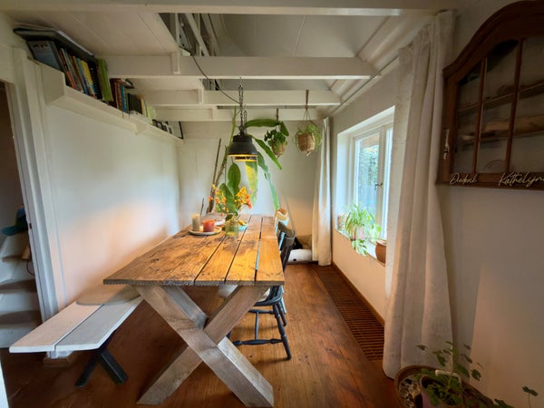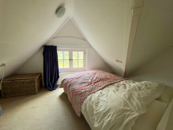 Set in an exceptional location, a charming thatched cottage is available for a single or working couple with at least one horse. This partly furnished terrace house is part of a small row and offers a stunning view of the garden and surrounding fields with grazing sheep and horses. The home is located on a private estate near the village of Heelsum, with good public transport links and highways nearby. Inside, you'll find an L-shaped living room with a wooden floor, a practical kitchen, and a bathroom. Upstairs, there's a spacious master bedroom. Additional features include a shed and a covered parking space, perfect for animal lovers.
