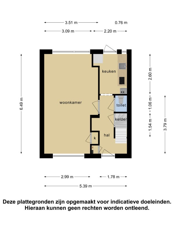 Ground floor: Front door/Hall: Hall with access to the toilet, stairs to the 1st floor, and living room, kitchen
