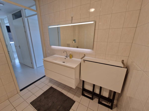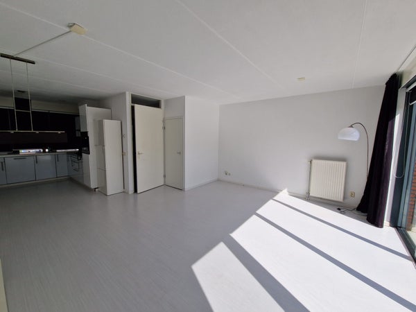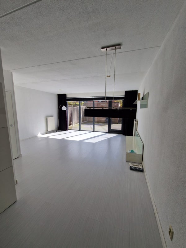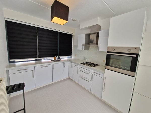You enter the spacious hall, where there is a toilet. Through the hall you enter the spacious living room with lots of light. You will find the kitchen at the front of the house. This is equipped with an extractor hood, dishwasher, oven, refrigerator, gas hob and sufficient storage space.