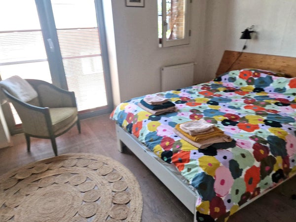 Two generous bedrooms, each furnished with a double bed. Stylish bathroom with walk-in shower and double washbasins, a separate toilet, as well as a washing machine and dryer.