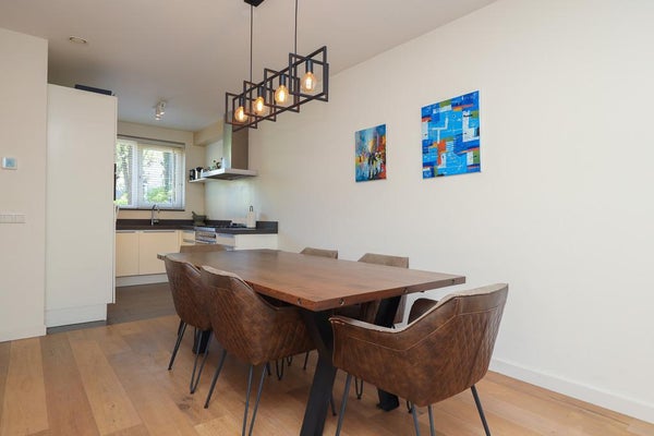 We offer this very spacious family house which is located in the popular residential area 'Boomberg'. The house offers a deep sunny south-facing backyard with a back entrance. The modern home is much more spacious than the exterior suggests and is luxuriously finished with high-quality materials from the new construction. The house is very energy efficient and fitted with heat pump and solar panels giving it an A+ energy label.
