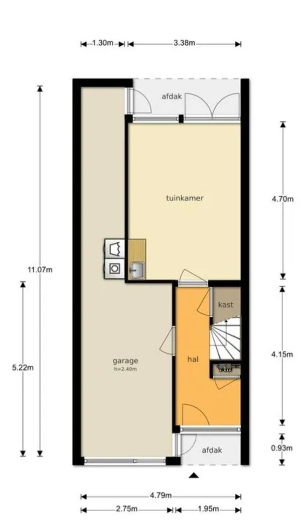 This neat drive-in home features a sunny south-facing garden and rooftop terrace. Entering through the spacious hall, you access the garage/storage area. The generous garden room, with double doors, offers a lovely view of the garden. On the first floor, you find an overflow with a toilet, a large living room, and a kitchen with built-in appliances. The second floor includes a complete bathroom and three bedrooms that lead to the rooftop terrace. The home has plastered walls and laminate floors. It is within walking distance of Hoorn's city center, NS station, schools, and shops. The rent is €1,350 per month, excluding gas, water, and electricity. Pets, smoking, and painting are not allowed. The usable area is 120 m², and the plot size is 119 m². Energy label C.