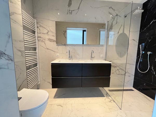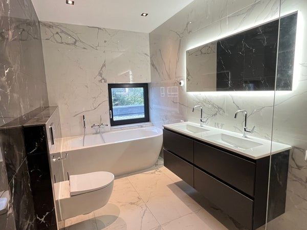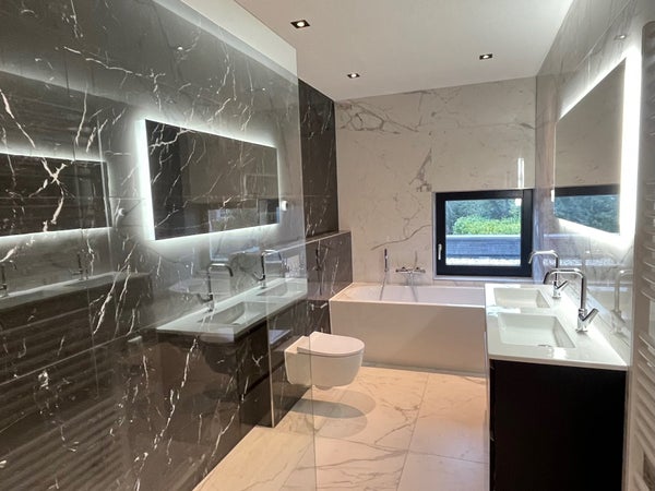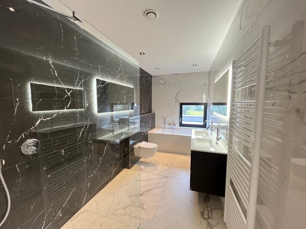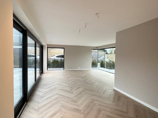 The house is built to be suitable for all life phases and therefore features, among other things, a bedroom with an ensuite bathroom on the ground floor. Upstairs there are another three large bedrooms and the 2nd bathroom. The property is completely gas-free and also equipped with solar panels, a heat pump, and underfloor heating. The entire property is offered unfurnished and characterized by an exceptionally high level of finish.