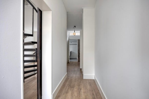 You enter the home through the hallway, which includes a practical storage closet. The very spacious and bright living room offers plenty of living space. The new kitchen is equipped with an induction cooktop, extractor hood, oven, dishwasher, refrigerator, and freezer.