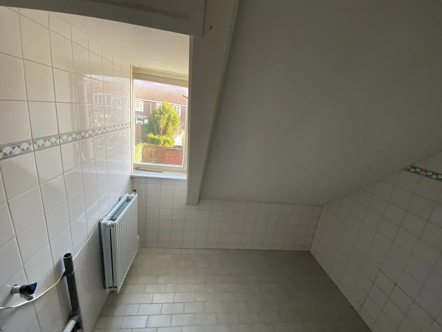 In Leiden Noord, on Waldeck Pyrmontstraat, a practical family home with a spacious backyard is for sale. The light living room, approximately 24 m², and the separate kitchen of 6 m² are located at the back of the house. From the hall with a toilet and staircase, you reach the first floor, which features three bedrooms (10 m², 8 m², and 5 m²) and a bathroom. Please note that the upper floor is partly under a sloping roof. There is a landing with access to a folding ladder leading to the attic, which provides extra storage space but is not suitable for living purposes. The backyard includes a detached shed for bicycles or storage, and nearby amenities such as Kooiplein shopping center and public transport are within walking and biking distance. This home is assigned to a family of at least 3 people, such as a family with 2 parents and 1 child or a single parent with 2 children.