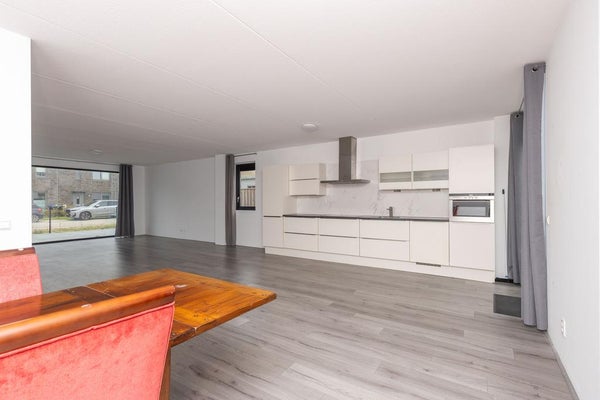Through the spacious entrance, you enter the home and gain access to all rooms on the ground floor. The very generous living room with open-plan kitchen and a separate dining area forms the heart of the home. From the living room, there is direct access to the low-maintenance garden, located along the water.