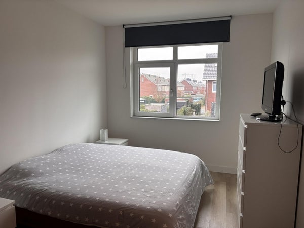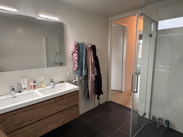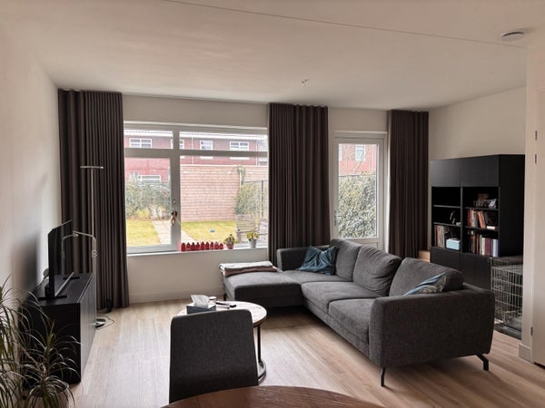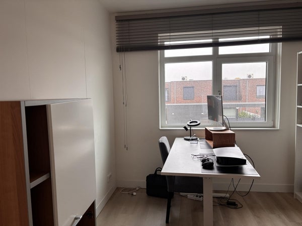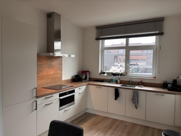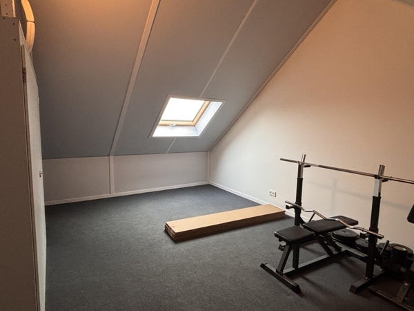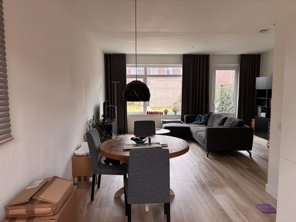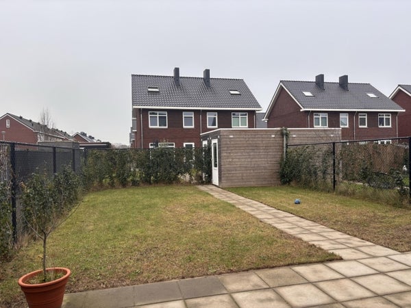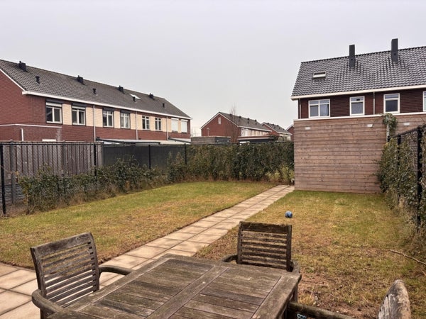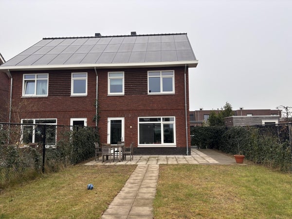 For rent: Luxury duplex houses in Linnerpark. This ready-to-live-in, sustainable family home is ideal for those seeking comfort. The house is fully equipped with a luxurious bathroom and kitchen, featuring brand-name appliances like a dishwasher and induction cooktop. The ground floor offers airless white finish and PVC flooring, while the attic has carpet. The L-shaped living room overlooks a backyard with a sun terrace and storage shed. The first floor includes three spacious bedrooms, all heated with underfloor heating. The spacious bathroom is fully equipped with Villeroy & Boch sanitary ware and underfloor heating. The attic provides space for additional rooms. Designed sustainably with excellent insulation and solar panels. Linne features beautiful nature areas and an active community. Available from January 1, 2026, for a minimum of 24 months.