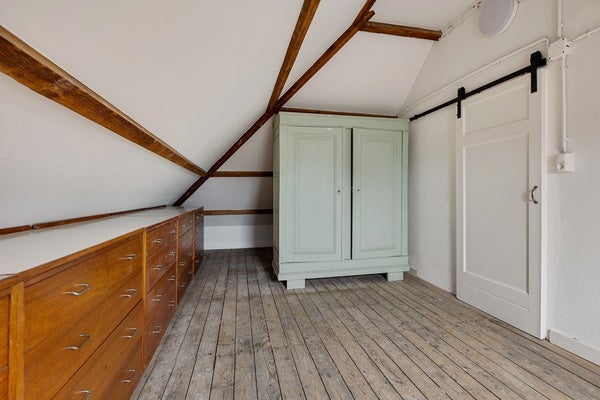 A fixed staircase leads to the very spacious attic floor (41 m²). Here you will find a spacious room that, thanks to its height and privacy, is perfect for use as an extra bedroom (28 m²). There is also a second room on this floor that can be used as storage space or as a work/playroom (13 m²).