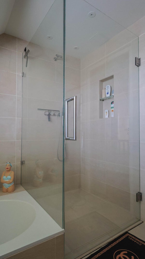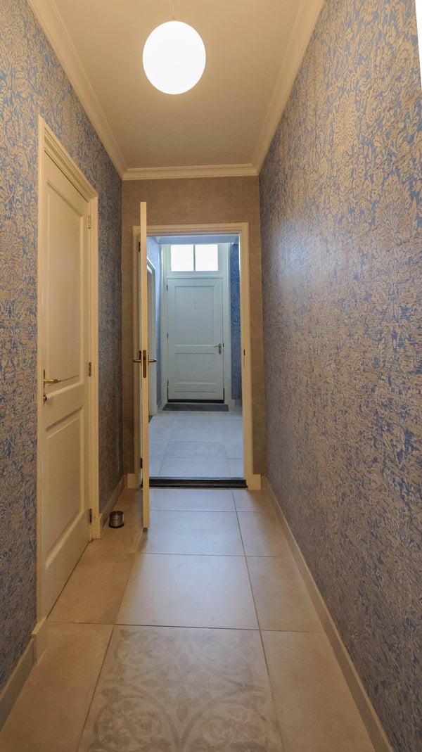 Behind the elegant façade lies a lovingly finished interior. The ground floor features a spacious hallway giving access to the bright front bedroom, a separate toilet and the atmospheric dining kitchen. This kitchen is a true showpiece: fully custom-made and equipped with handcrafted wooden cabinets, an elegant marble countertop, a large fridge with freezer and, as the centerpiece, a Boretti stove. A place where cooking becomes a pleasure. At the rear you’ll find the spacious living room overlooking the exceptional garden. A short step up leads to the cosy little room —an ideal separate TV room where you can retreat in peace.