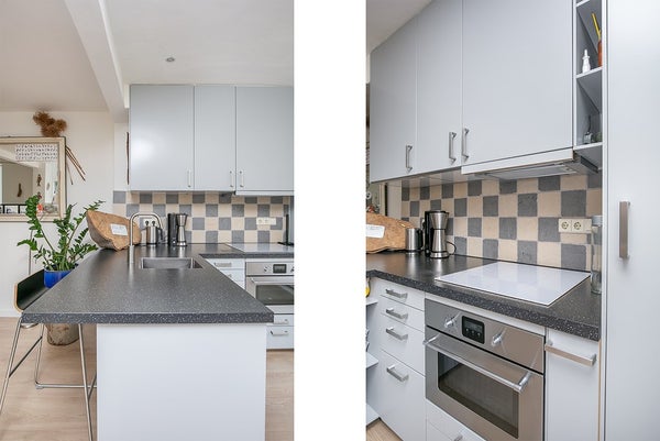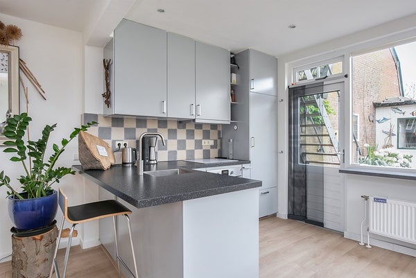 The sunny paved garden facing west has a size of 20 m2, with a spacious shed that serves as a bike storage.