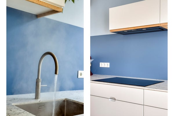 The house is spread over several floors, providing a clear separation between living and sleeping areas. Upon entering through the hallway, you’ll find the very spacious and modern kitchen-diner. It is equipped with a Quooker, induction cooktop, combi oven, dishwasher, refrigerator, and freezer. A comfortable dining area has also been created here. From this space, you have direct access to the garden—a wonderful spot to enjoy the warmer months. The garden faces south and includes a storage shed.