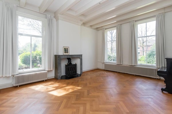 Unique opportunity! Exceptionally spacious monumental property (until recently used as a rectory) with 330 m² of living space and 242 m² of additional internal space, as well as a very privately situated backyard of approximately 650 m² with carport and storage. Located in the leafy country estate area of ’s-Graveland, with estates such as Hilverbeek, Spanderswoud, Boekesteijn and Schaep en Burgh nearby. Everything about this national monument exudes the grandeur of its construction period, including characteristic features such as high ceilings with ornaments, very large rooms with tall windows, and the central hall with its staircase at the heart of this impressive property.